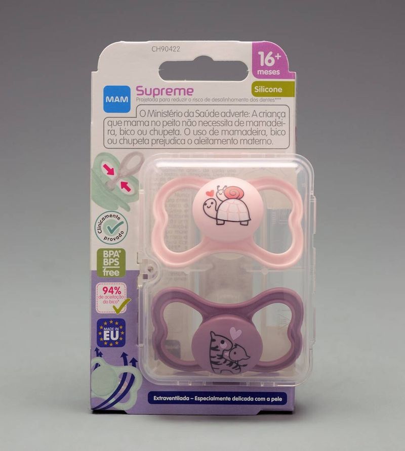 Chupeta Supreme 16m+ com 2 unidades Roxa/Branca - CH90422