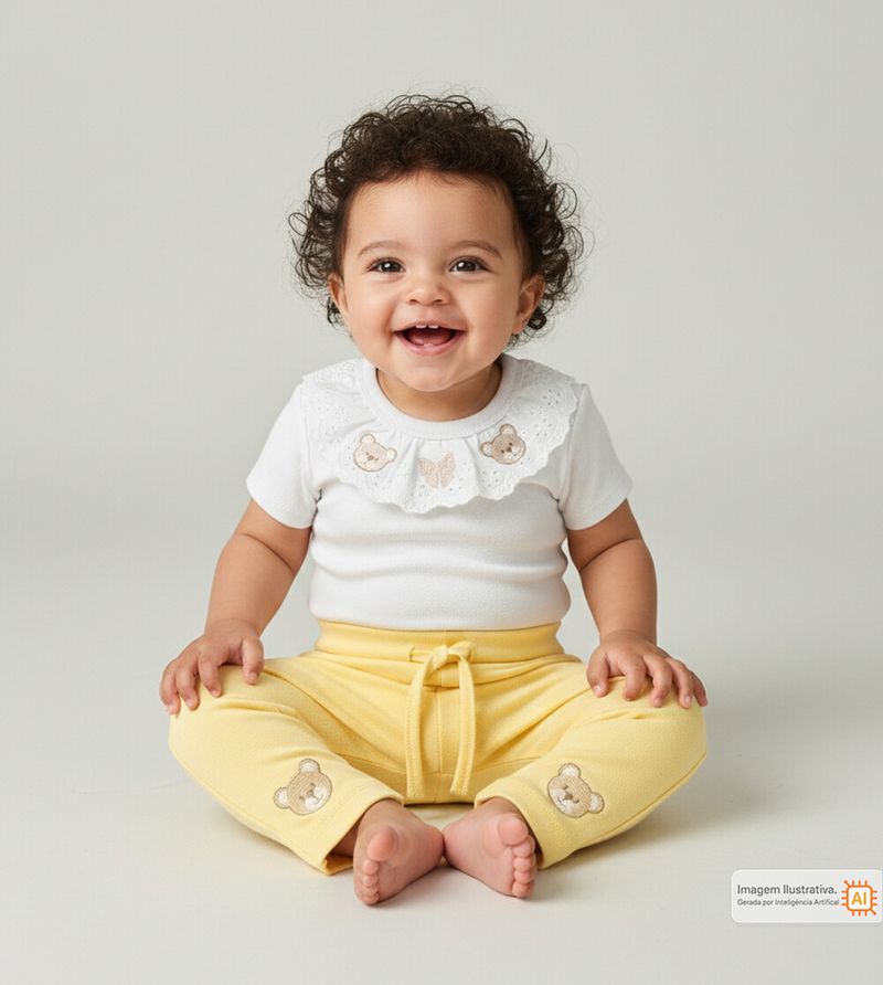 Conjunto Body Ursinhos e Renda Amarelo