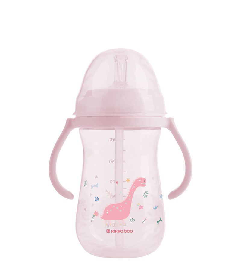 Copo com Canudo Dino World 300ml Rosa - Kikka boo