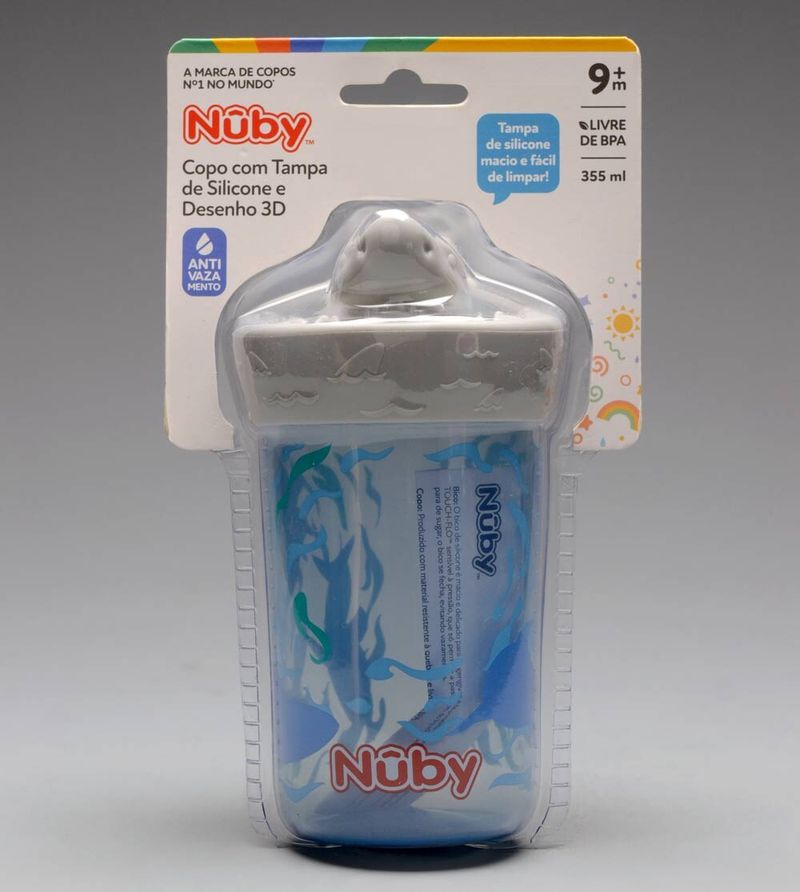 Copo com Tampa 3D em Silicone 355ml - NB10748 Azul