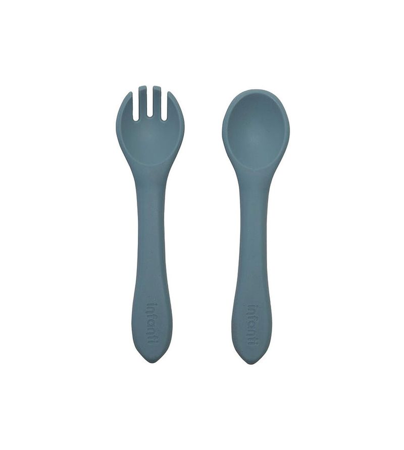 Garfo e Colher de Silicone Azul - Infanti