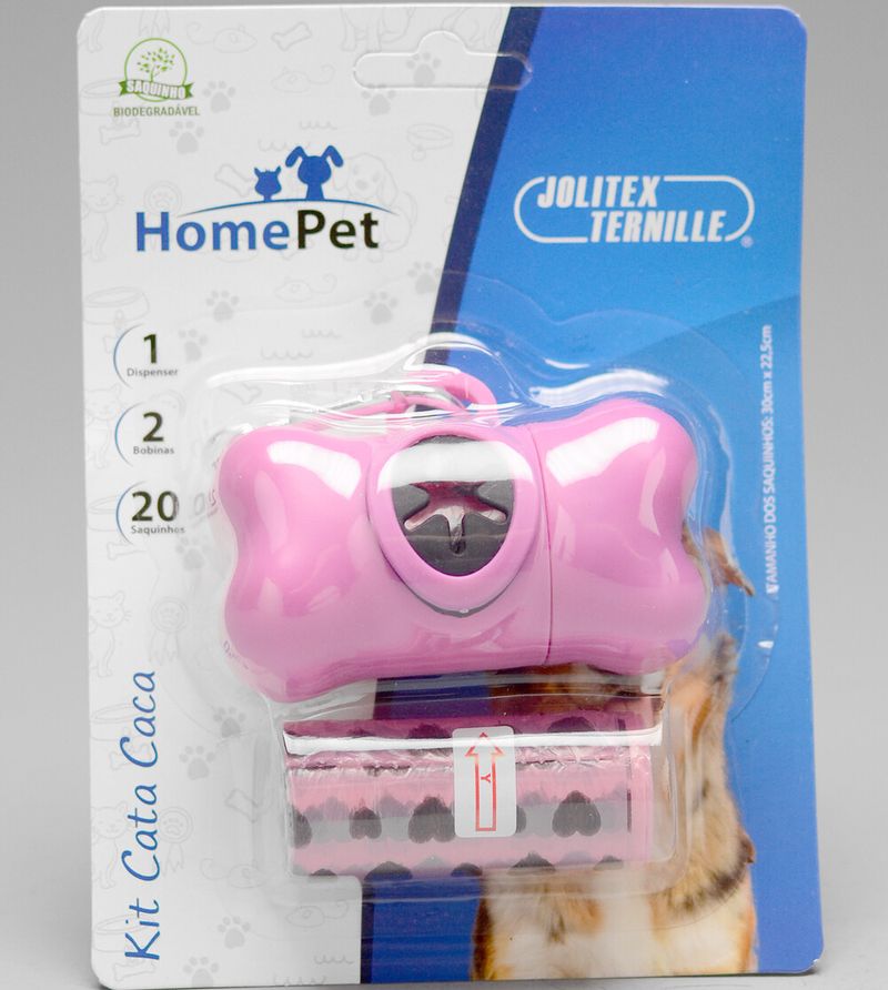 Kit Cata Caca com Dispenser e 2 Rolos Rosa - HomePet