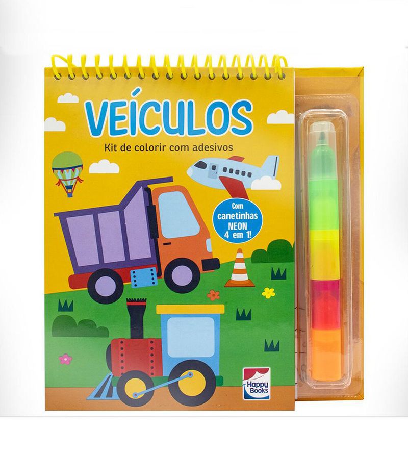 Kit Colorir Com Canetinha e Adesivos Veículos