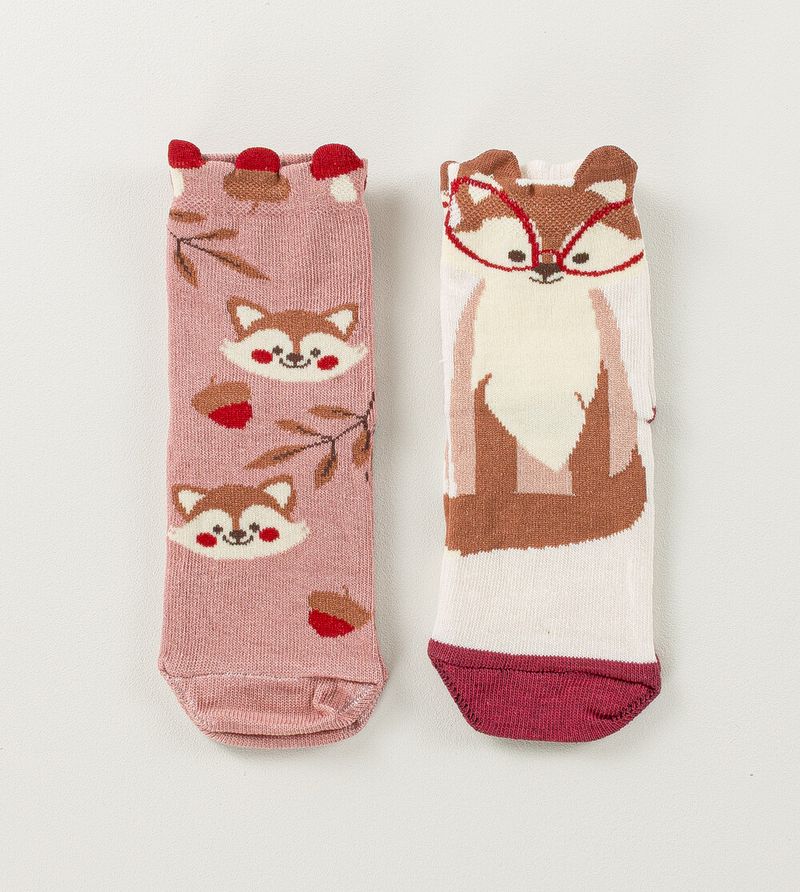 Kit Meia Soquete Infantil 3D Raposa com 2 Unidades
