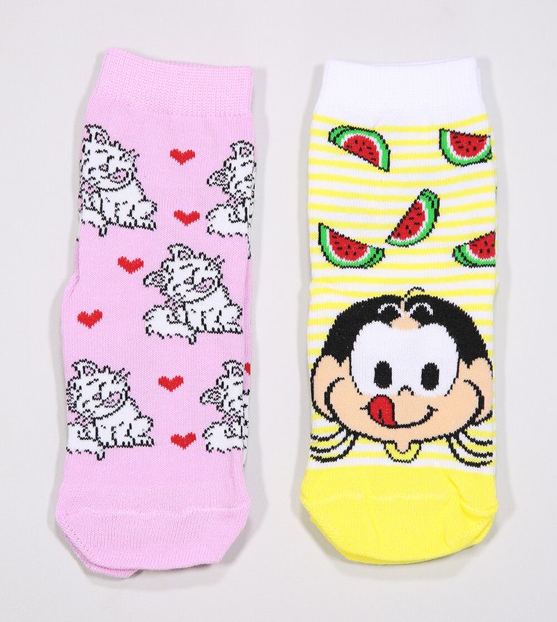 Kit Meia Soquete Infantil 2 Unidades Turma da Mônica 23 a 26