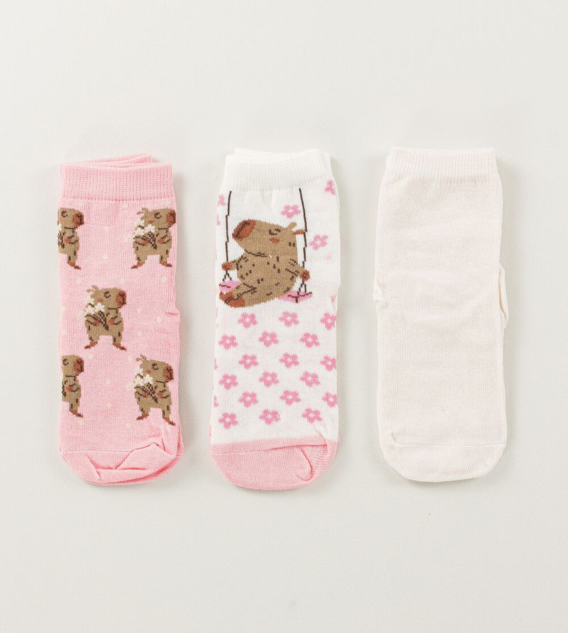 RoupasAcessóriosMeias e joelheirasKit Meia Soquete Infantil com 3 Unidades Tam. 23 à 26