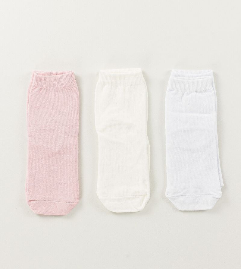 Kit Meia Soquete Infantil Lisa com 3 Unidades