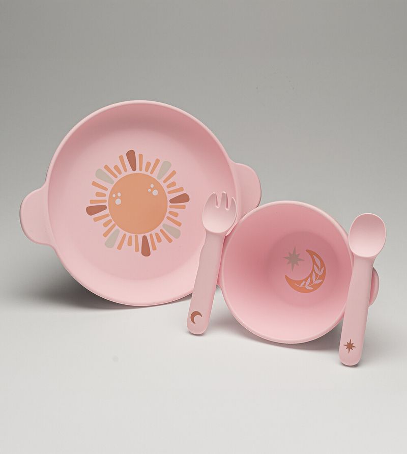 Kit Refeição Magnético em Silicone com 4 peças Rosa Twibex