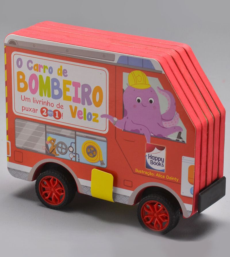 Livrinho de Puxar 2 em 1 O Carro de Bombeiro Veloz