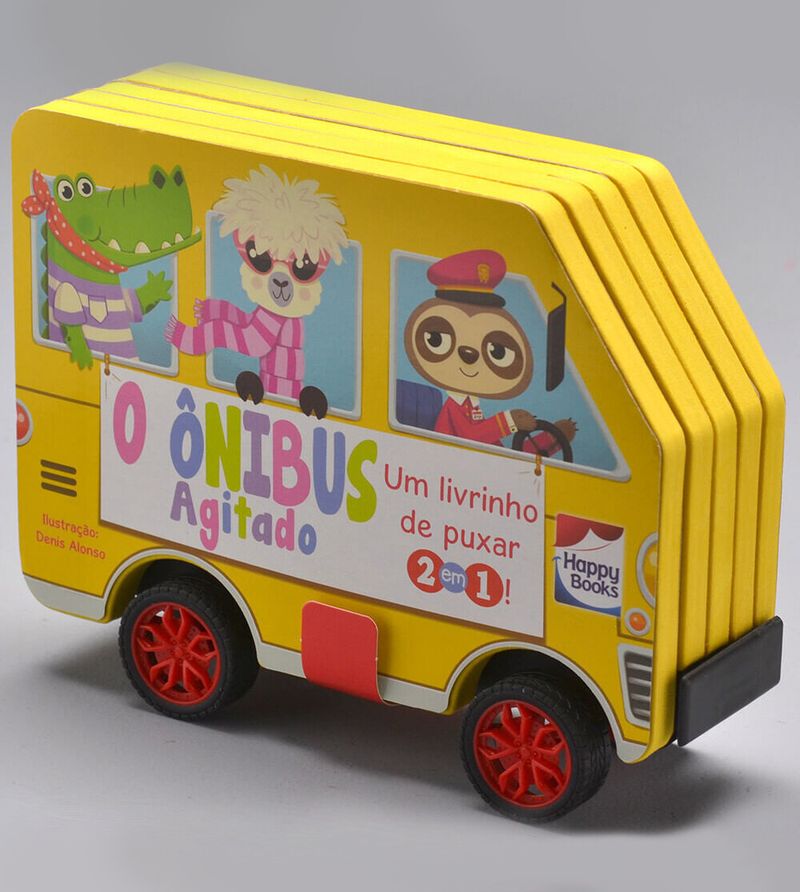 Livrinho de Puxar 2 em 1 Ônibus Agitado