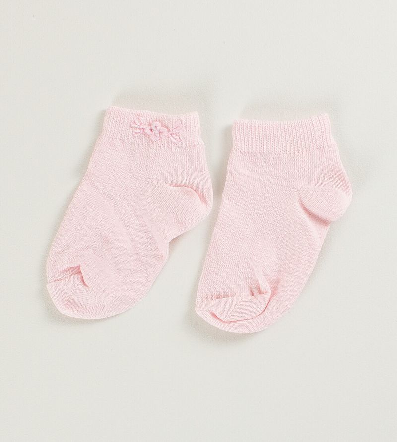 RoupasAcessóriosMeias e joelheirasMeia com Bordado Florzinha Rosa - Tam. 18 a 25