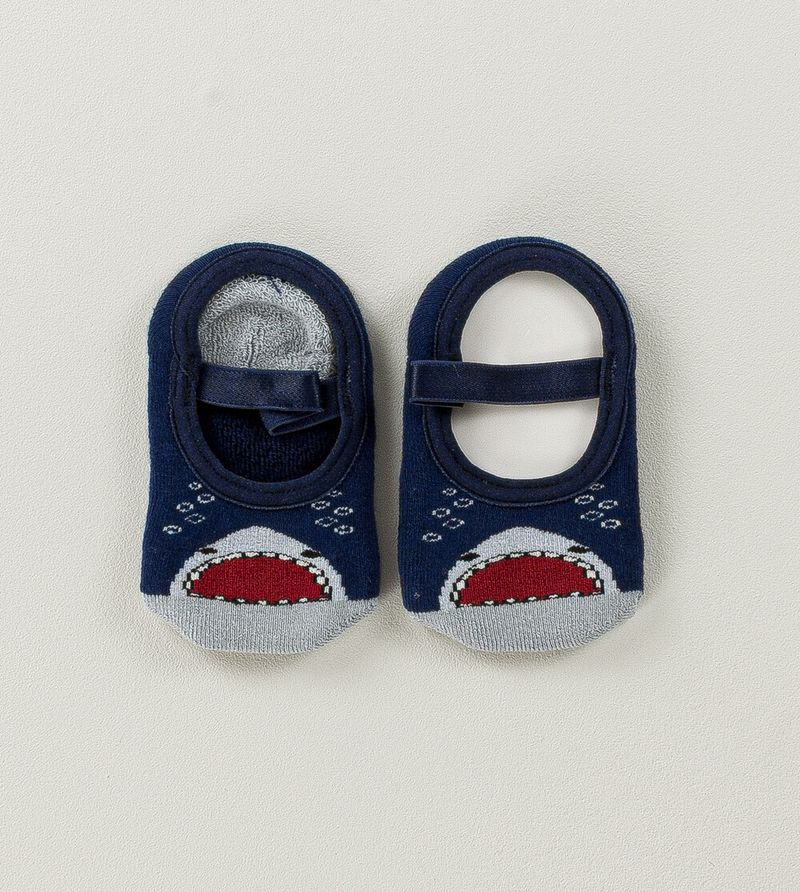 Meia Sapatilha Baby Antiderrapante Tubarão Marinho