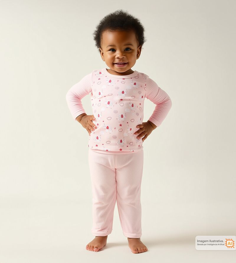 Pijama Canelado Elefantinho Rosa