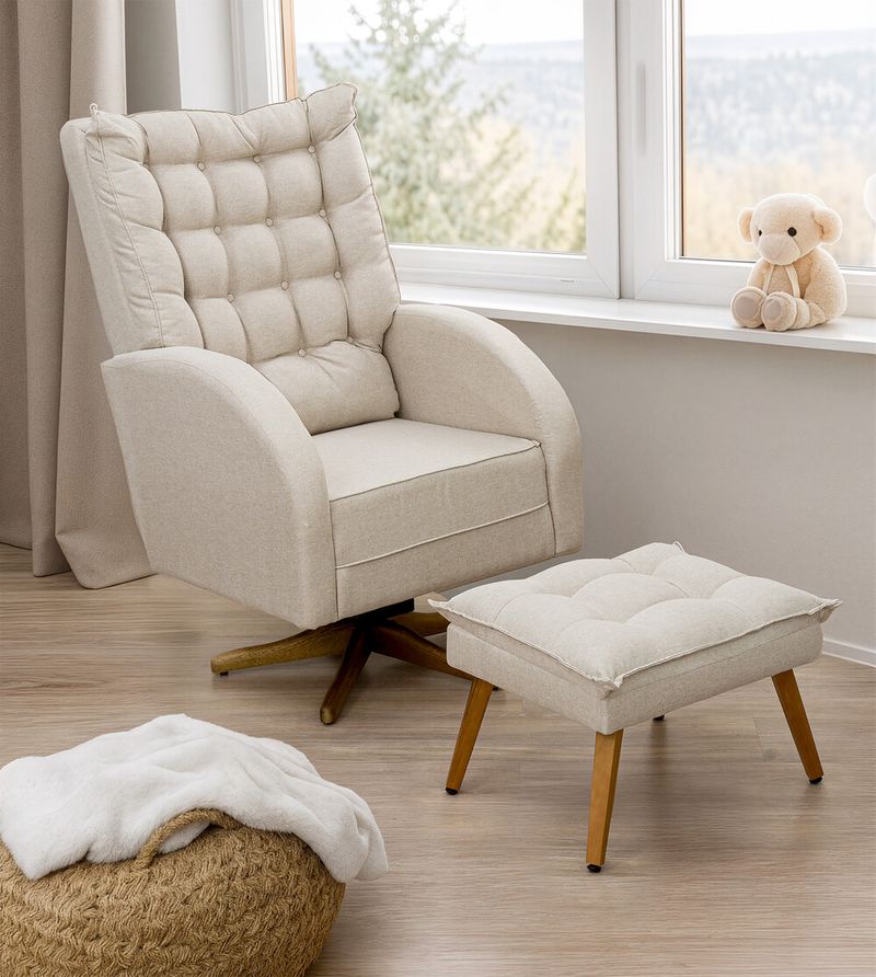 Poltrona Amamentação Ana Clara Balanço e Giro com Puff - Linho