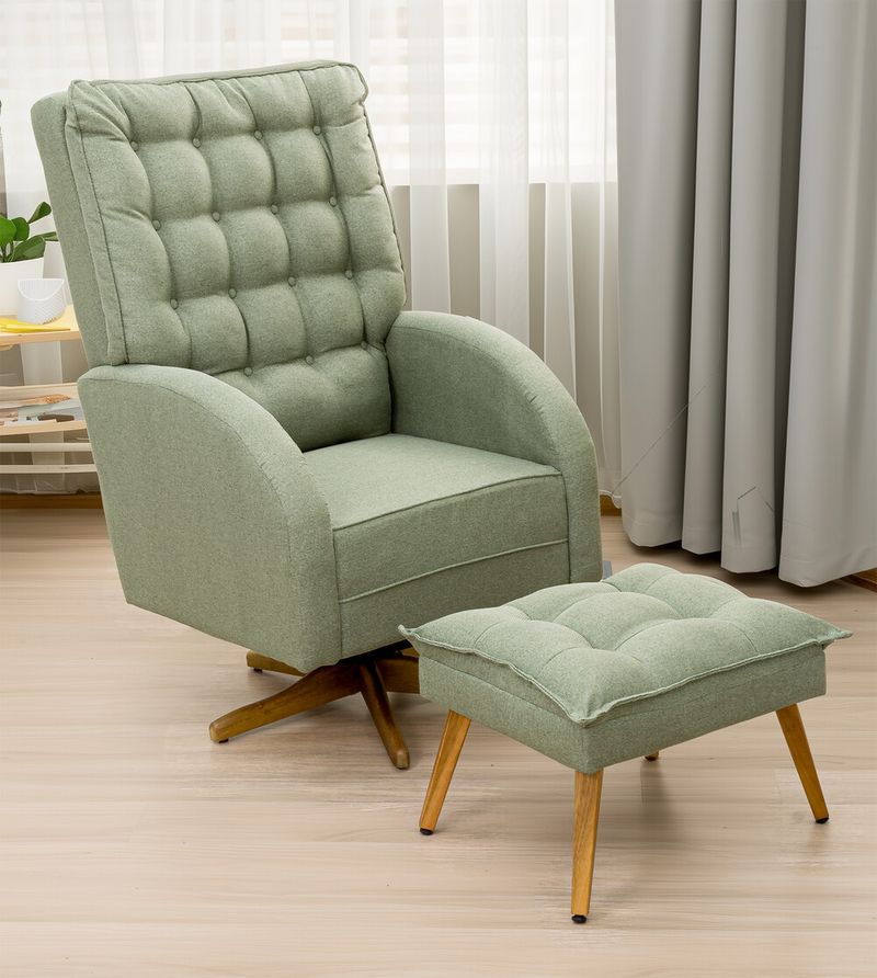 Poltrona Amamentação Ana Clara Balanço e Giro com Puff - Linho