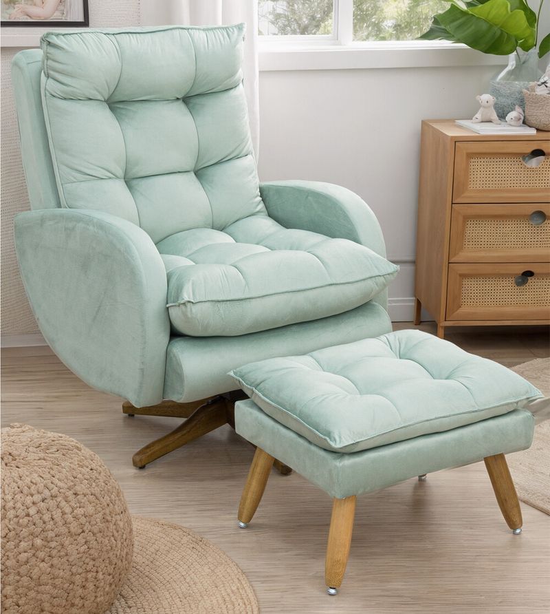 Poltrona Amamentação Cláudia Veludo com Puff Gariani