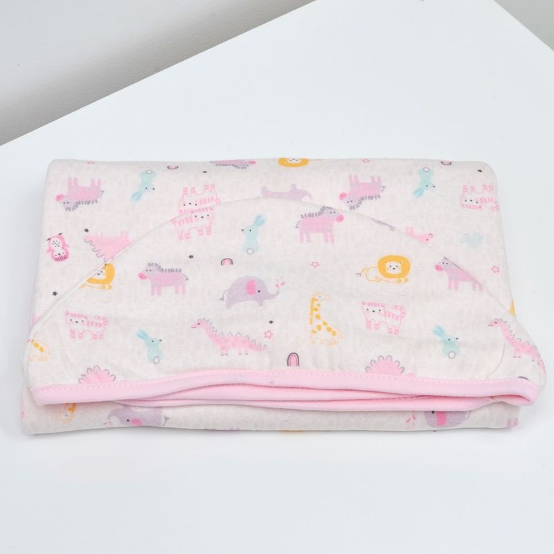 Toalha com Capuz Baby 86cm x 62cm -Safari Rosa