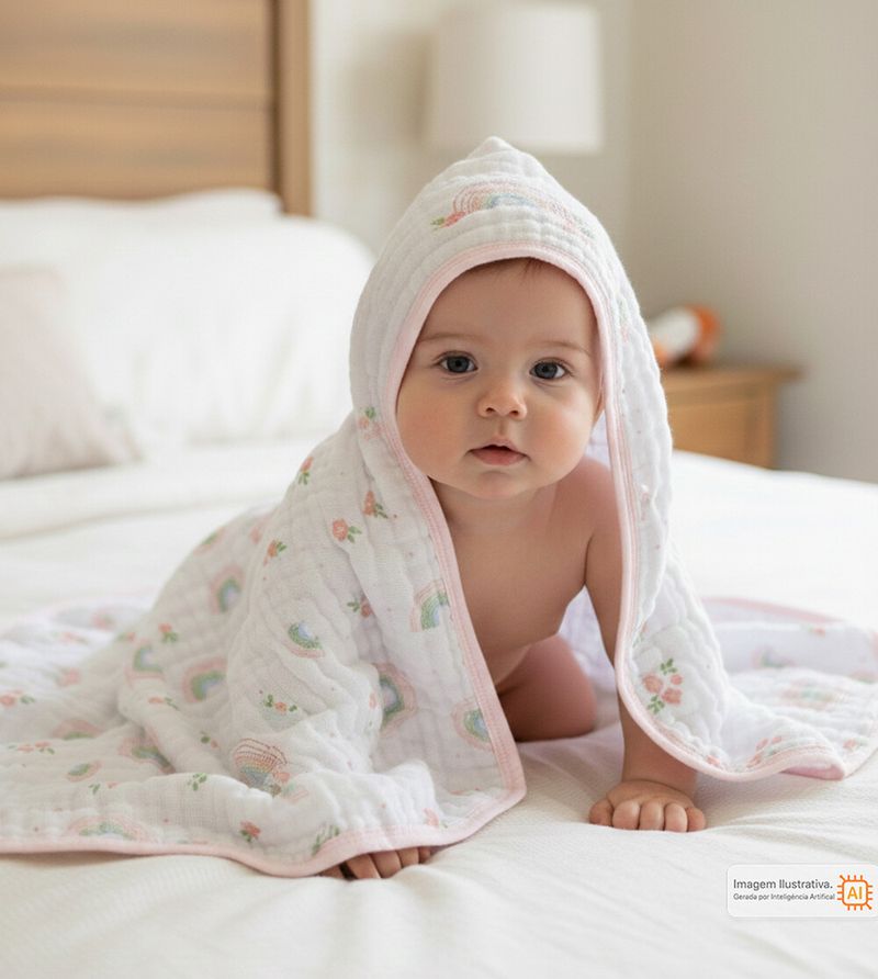 Toalha de Banho Soft com Capuz Bordado 90 x 80cm