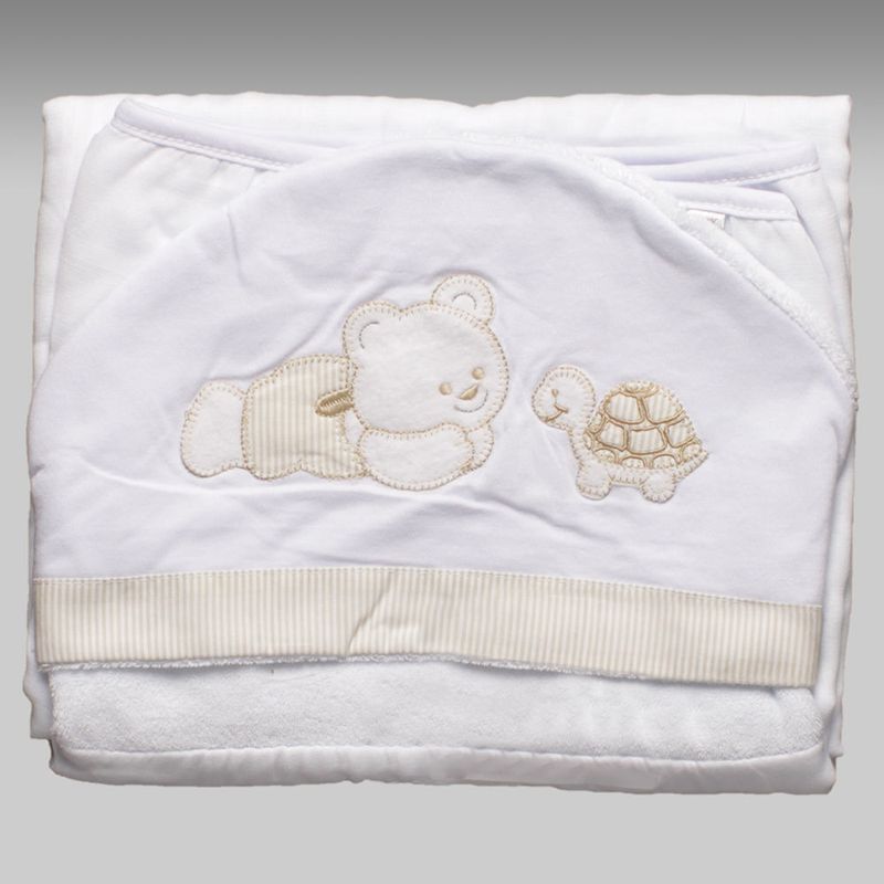 Toalha Maxi Dupla com Fralda Urso Tartaruga - TF032-Bege