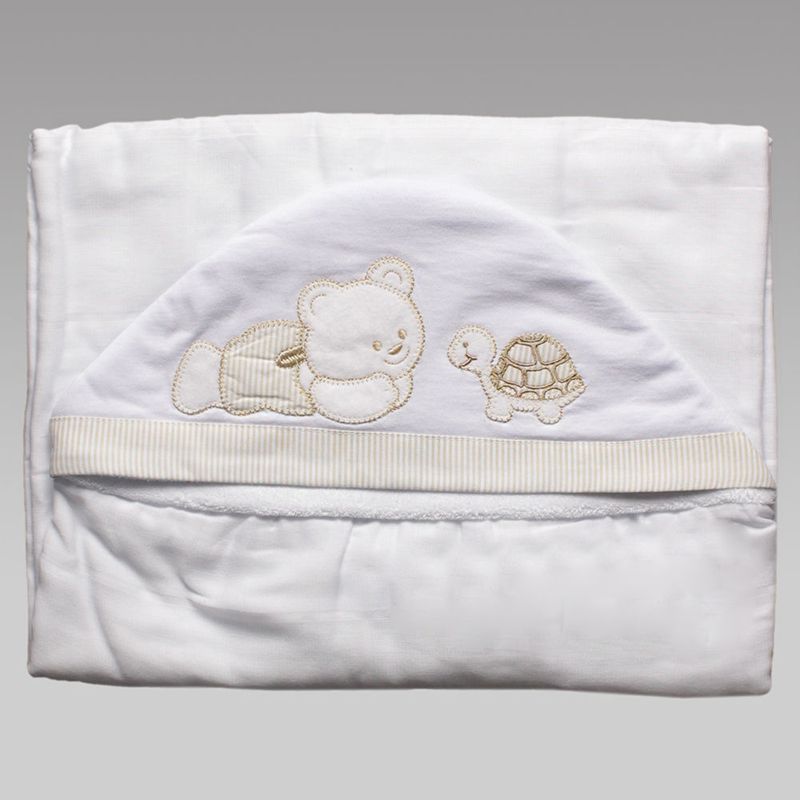Toalha Pequena Dupla com Fralda Urso Tartaruga - TFP032-Bege