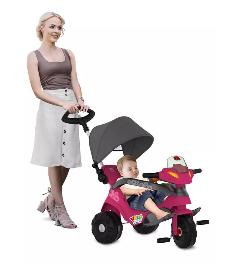 Velobaby Reclinável com Capota Passeio e Pedal Rosa Bandeirante