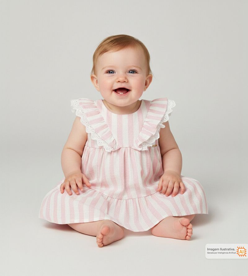 Vestido Listras e Renda Baby
